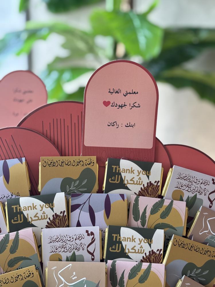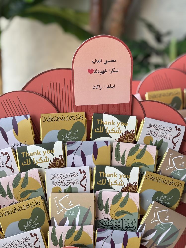 مغلفةبعبارت شكر للمعلمين او المعلمات.. ومع بطاقة يطبع الاسم او الشعار حسب الطلب .. "كتابه الاسم في خانة اضف ملاحظة "